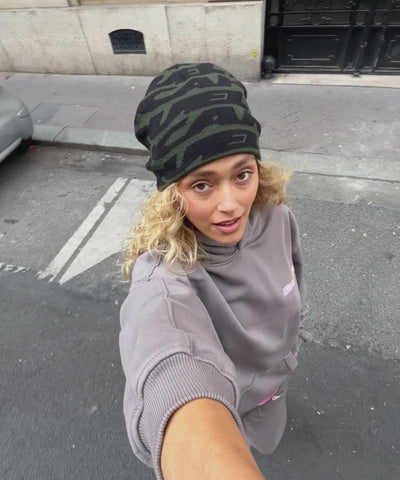 Cruel Pancake all over green beanie.